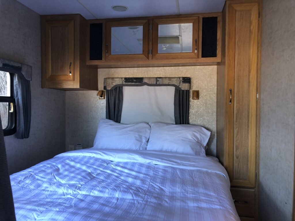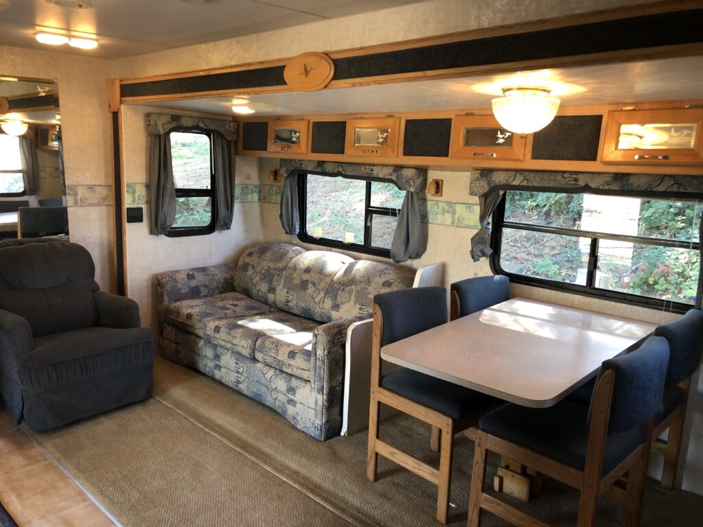 Experience the perfect fusion of comfort and adventure with our onsite RV trailer. Surrounded by nature, this spacious retreat is thoughtfully designed for relaxation. Enjoy a restful night under the stars with all the essentials for an unforgettable outdoor escape. This is NOT a luxury accommodation, but it is a refreshing step above traditional camping—offering simple, comfortable accommodations that let you enjoy the outdoors with ease.